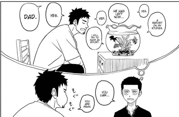 But here's where things get interesting. While his father is an undisputed genius when it comes to crafting these deadly works of art, he's also an eccentric character with an affinity for conversations with his pet fish. Picture a serious craftsman passionately working with molten metal one moment and engaging in a whimsical conversation with a fish the next. It's a delightful contrast that sets the stage for the manga's unique atmosphere.